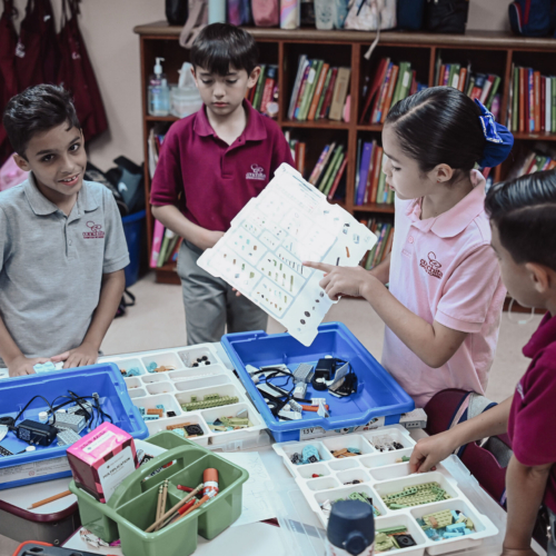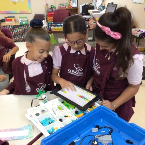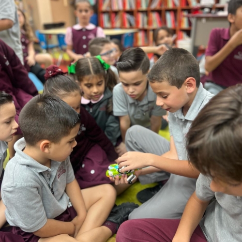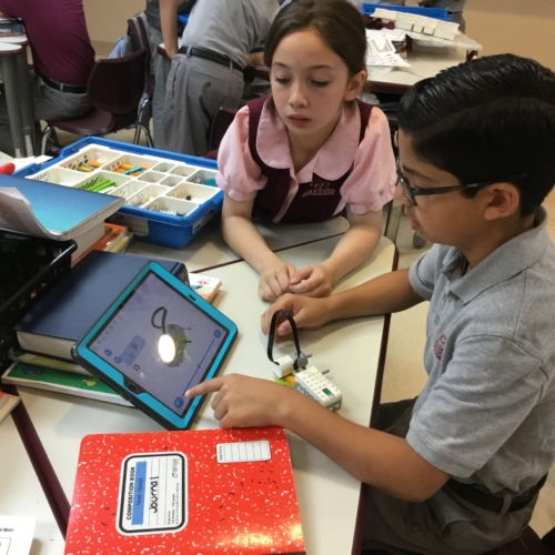 In Lego Robotics, students learn new vocabulary, use creativity, science, technology, and organization, planning, and problem-solving skills to build models and program them. Students share their creations with peers orally and in writing.